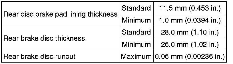 SPECIFICATIONS: BRAKE (REAR): SERVICE DATA