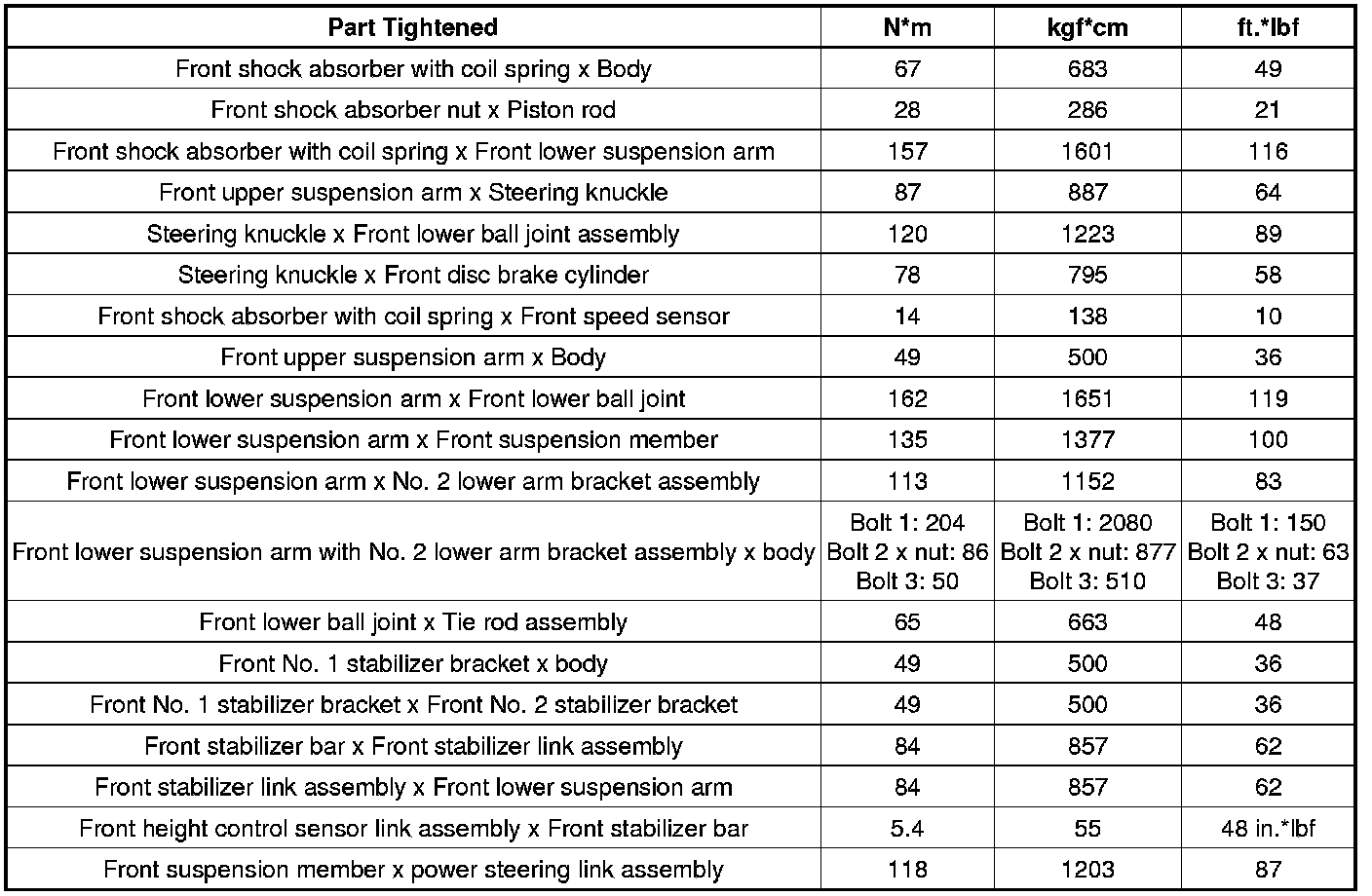 Torque Specifications