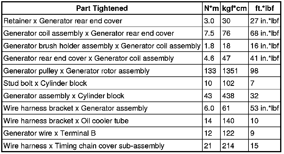 SPECIFICATIONS: 2UR-GSE BATTERY / CHARGING: TORQUE SPECIFICATIONS