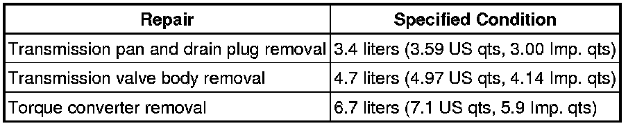 (a) Fill the transmission with the amount of fluid listed in the table below.