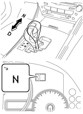 While moving the shift lever between N and D a few times, the N indicator in the combination meter will not illuminate for 4 seconds even if the shift lever is moved to N. This indicates that transmission fluid temperature detection mode has been entered.