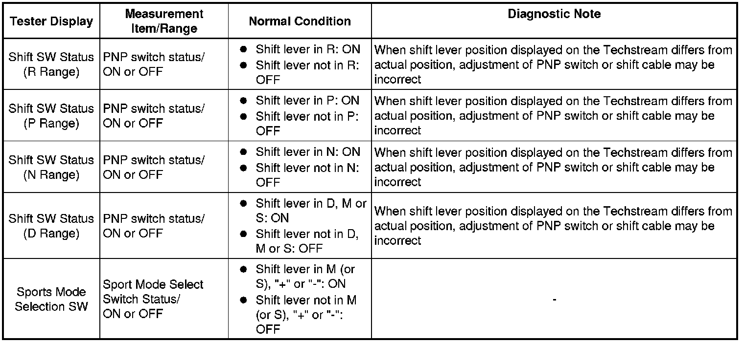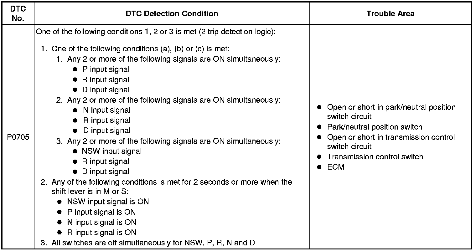 1UR-FSE ENGINE CONTROL SYSTEM: SFI SYSTEM: P0705: Transmission Range Sensor Circuit Malfunction (PRNDL Input)
