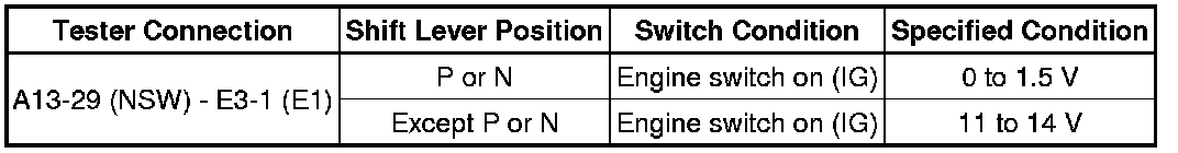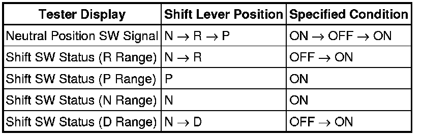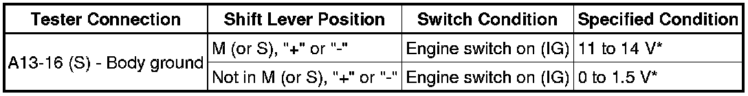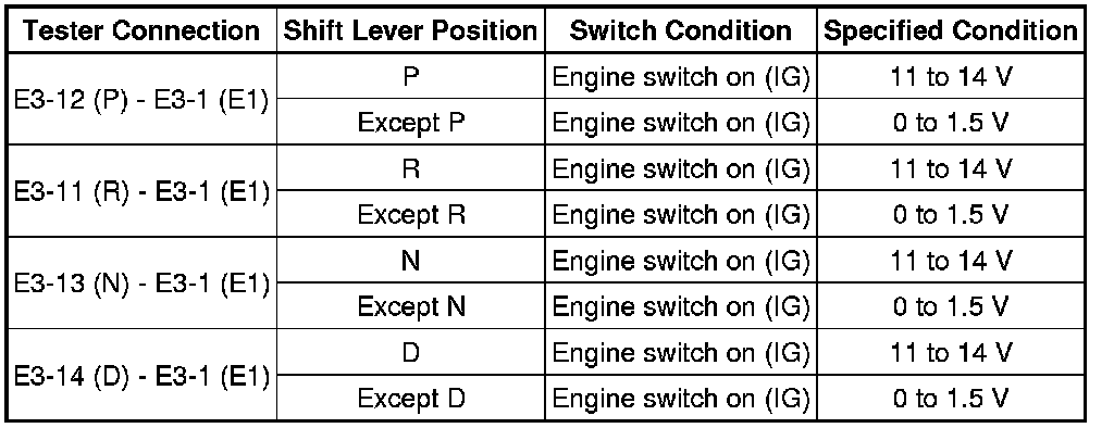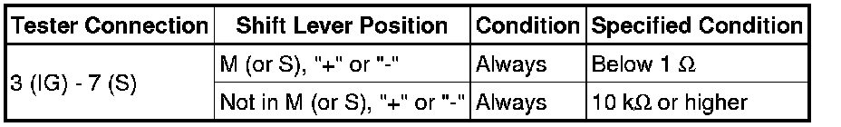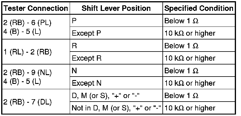 (b) Measure the resistance according to the value(s) in the table below when the shift lever is moved to each position.
