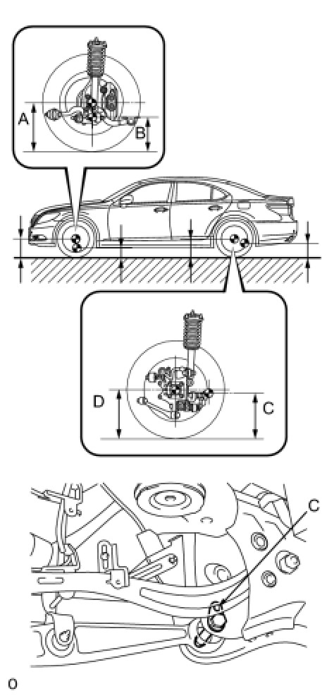 (b) If the vehicle height is not as specified, adjust the height by pressing down on the vehicle several times to stabilize the suspension.