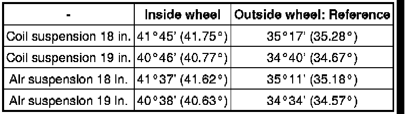 Standard wheel turning angle:
