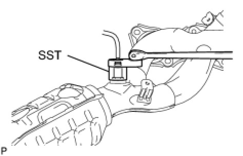 (a) Using SST, remove the air fuel ratio sensor from the exhaust manifold LH.