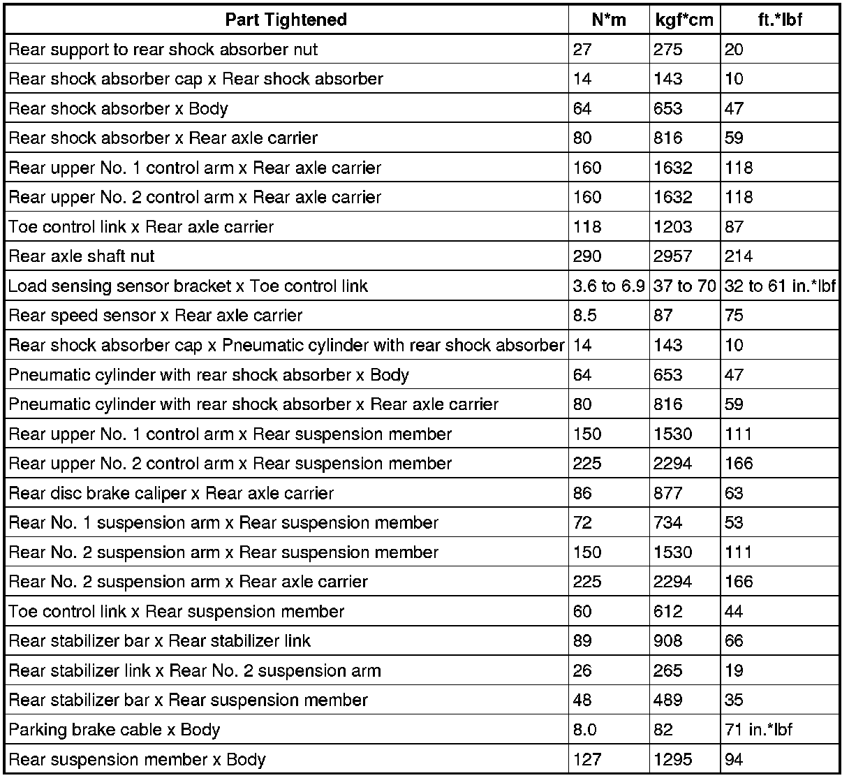 : TORQUE SPECIFICATIONS