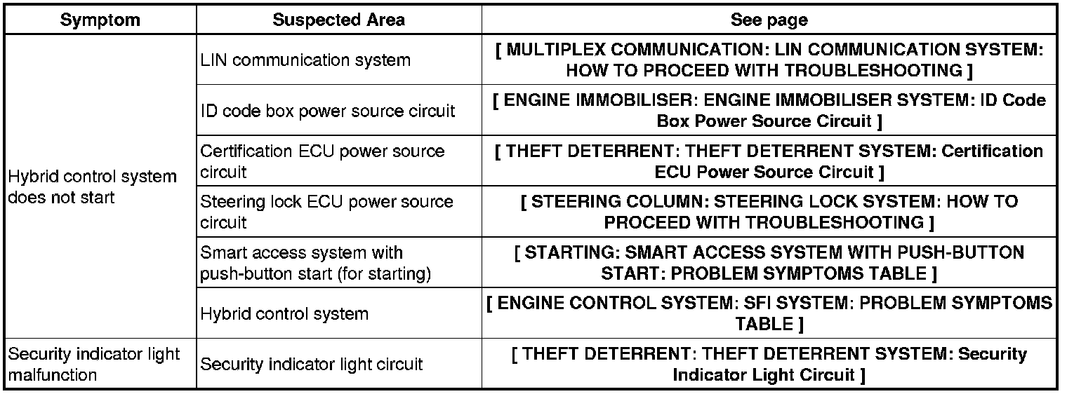 ENGINE IMMOBILIZER: ENGINE IMMOBILIZER SYSTEM: PROBLEM SYMPTOMS TABLE