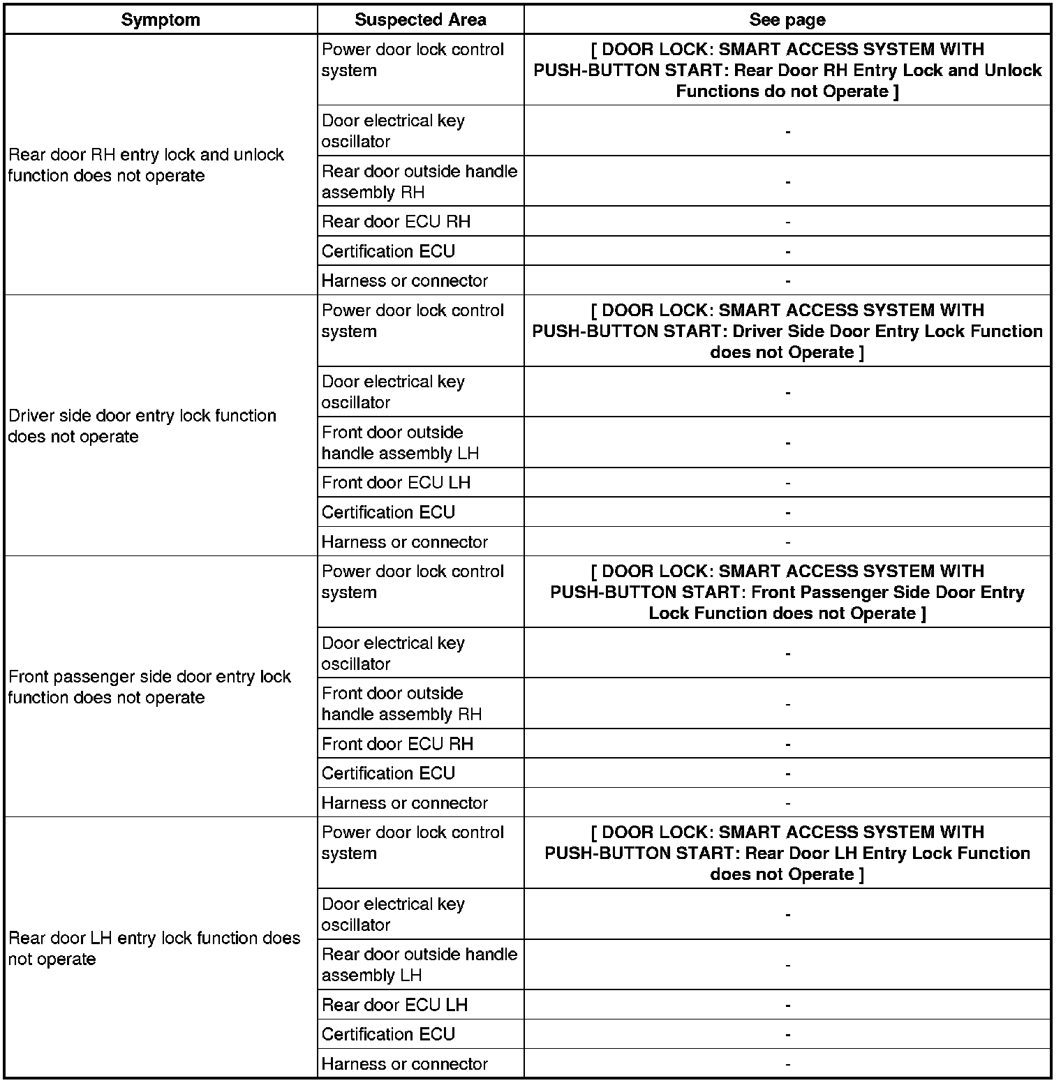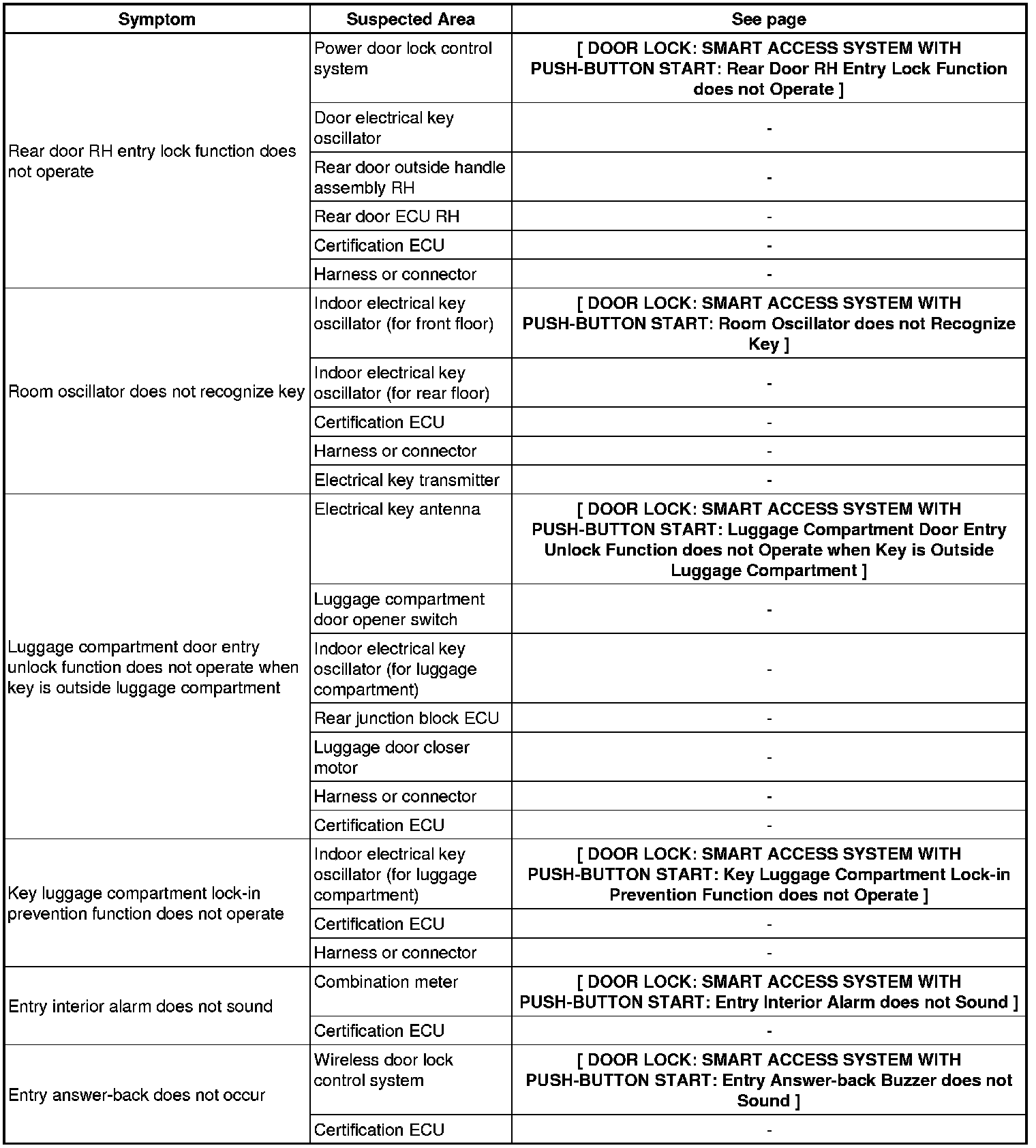 DOOR LOCK: SMART ACCESS SYSTEM WITH PUSH-BUTTON START: PROBLEM SYMPTOMS TABLE