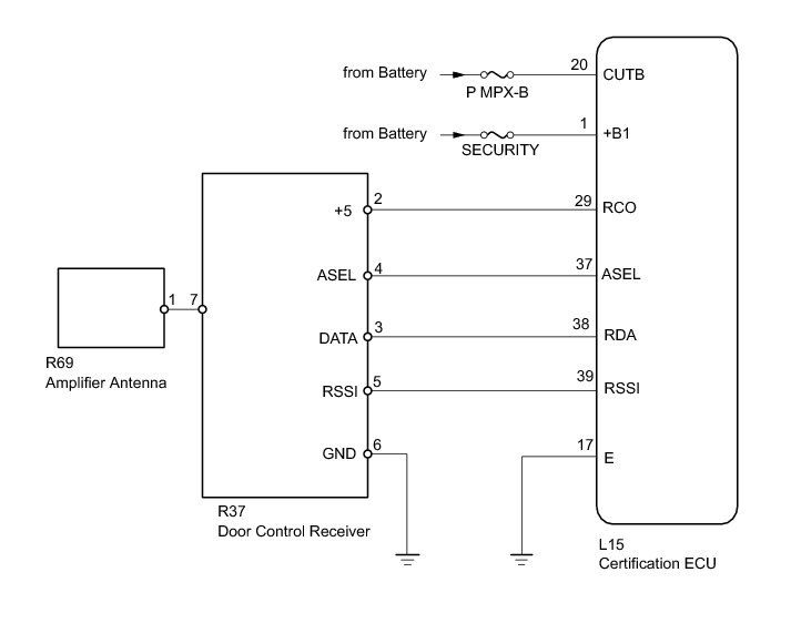 When the entry operation and wireless operation door lock function does not operate, a malfunction or wave interference may be occurring in either of the following: 1) the signal communication line between the door control receiver and certification ECU (line is used by entry and wireless); or 2) the door control transmitter.