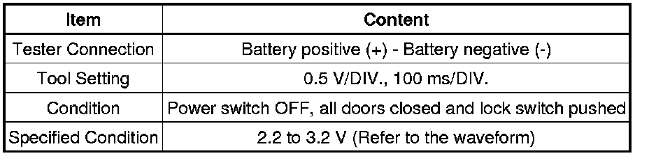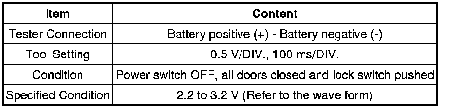 When measuring the battery voltage, while operating the lock switch of a door handle, bring the card key within the entry operating range to perform the measurement. For the entry operating range, refer to SYSTEM DESCRIPTION Smart Access System With Push-Button Start.