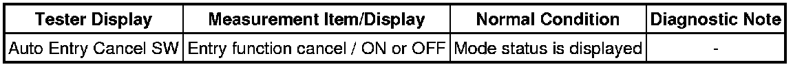 When the wireless operation can be used to lock and unlock the doors, the communication line between the door control receiver and certification ECU is normal. When the entry operation does not operate, one of the following may be the cause: 1) entry cancel function is set through customization; 2) malfunction in smart access system communication line (electrical key transmitter and vehicle); or 3) wave interference.