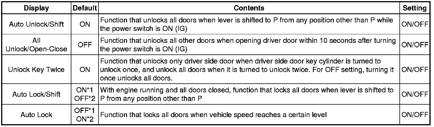 DOOR LOCK: POWER DOOR LOCK CONTROL SYSTEM: CUSTOMIZE PARAMETERS