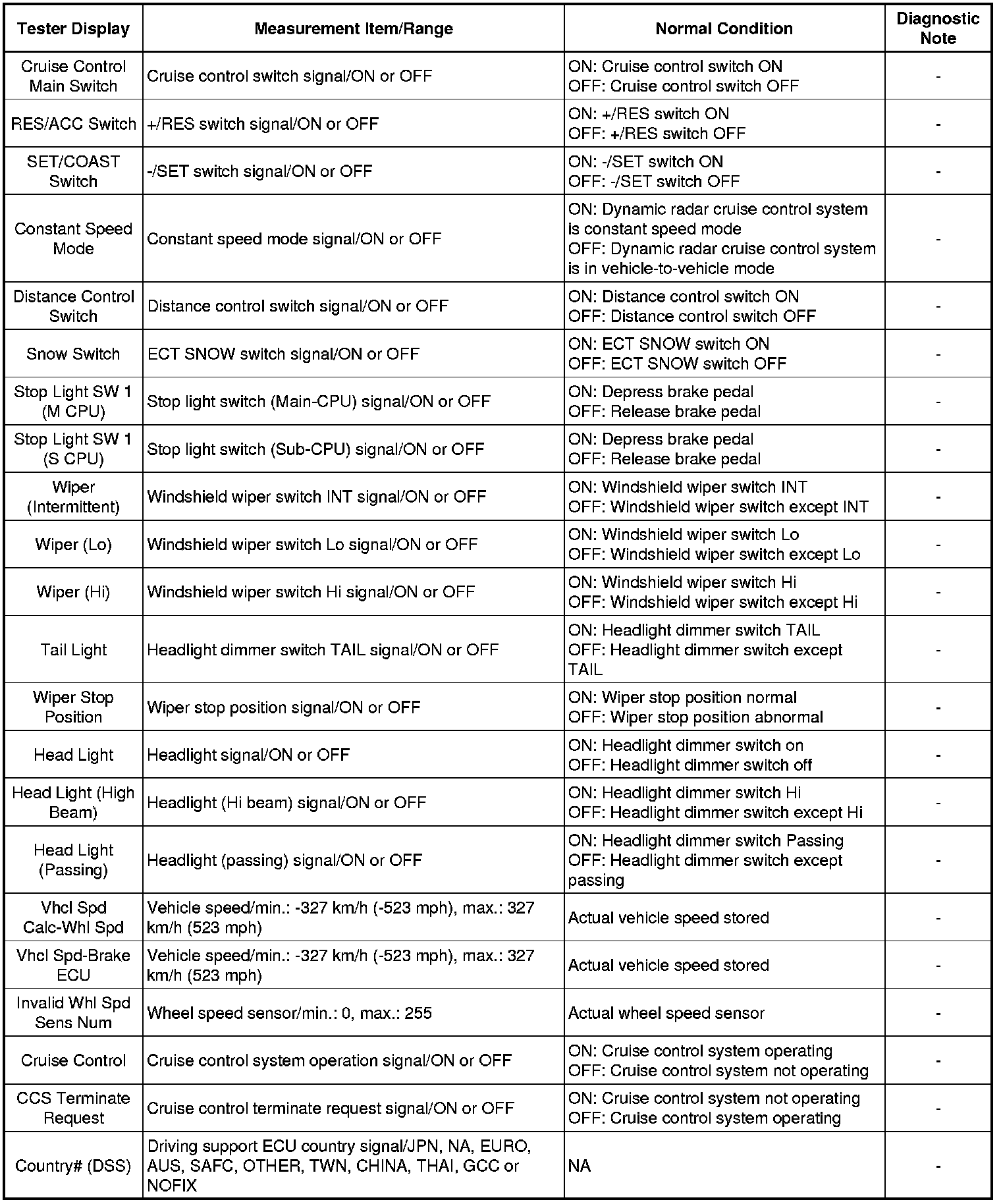 Using the Techstream to read the Data List allows values or states of switches, sensors, actuators and other items to be read without removing any parts. This non-intrusive inspection can be very useful because intermittent conditions or signals may be discovered before parts or wiring is disturbed. Reading the Data List information early in troubleshooting is one way to save diagnostic time.