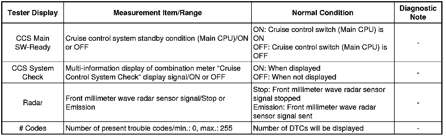 CRUISE CONTROL: DYNAMIC RADAR CRUISE CONTROL SYSTEM: DATA LIST / ACTIVE TEST