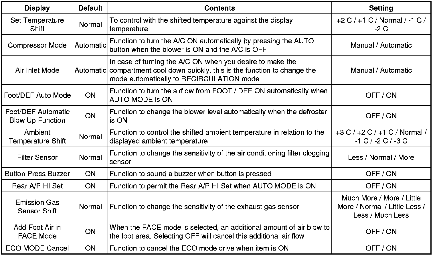 AIR CONDITIONING: AIR CONDITIONING SYSTEM: CUSTOMIZE PARAMETERS