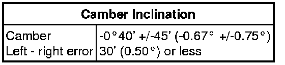 * The maximum tolerance of right and left difference for the camber is 30' or less.