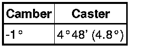 If the caster and steering axis inclinations are not within the specified values, after the camber has been correctly adjusted, recheck the suspension parts for damaged and/or worn out parts.