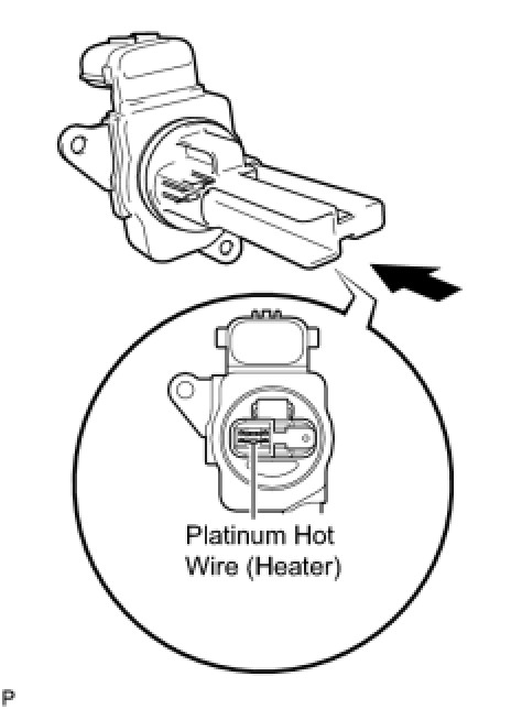 (a) Perform a visual check for any foreign matter on the platinum hot wire (heater) of the mass air flow meter shown in the illustration.