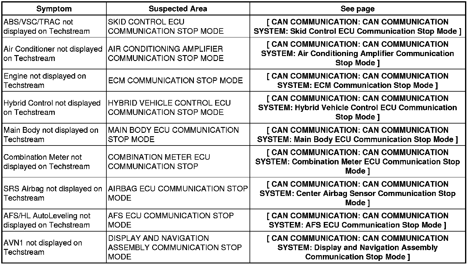 CAN COMMUNICATION: CAN COMMUNICATION SYSTEM: PROBLEM SYMPTOMS TABLE