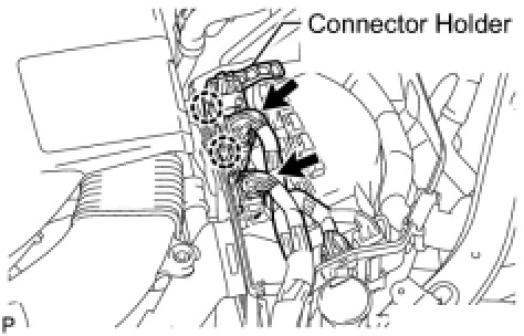 (b) Disconnect the 2 claws with the connector holder.
