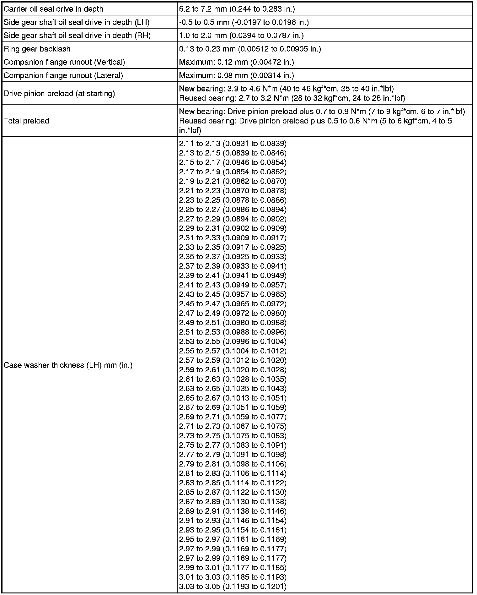 SERVICE SPECIFICATIONS: DIFFERENTIAL: SERVICE DATA