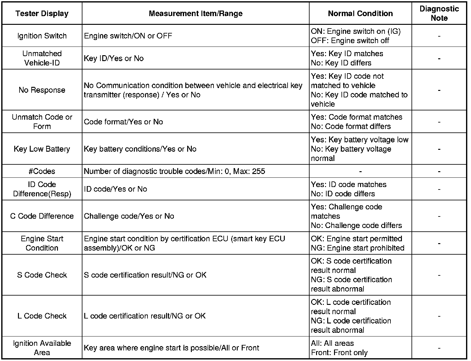 THEFT DETERRENT / KEYLESS ENTRY: SMART ACCESS SYSTEM WITH PUSH-BUTTON START (for Start Function): DATA LIST / ACTIVE TEST