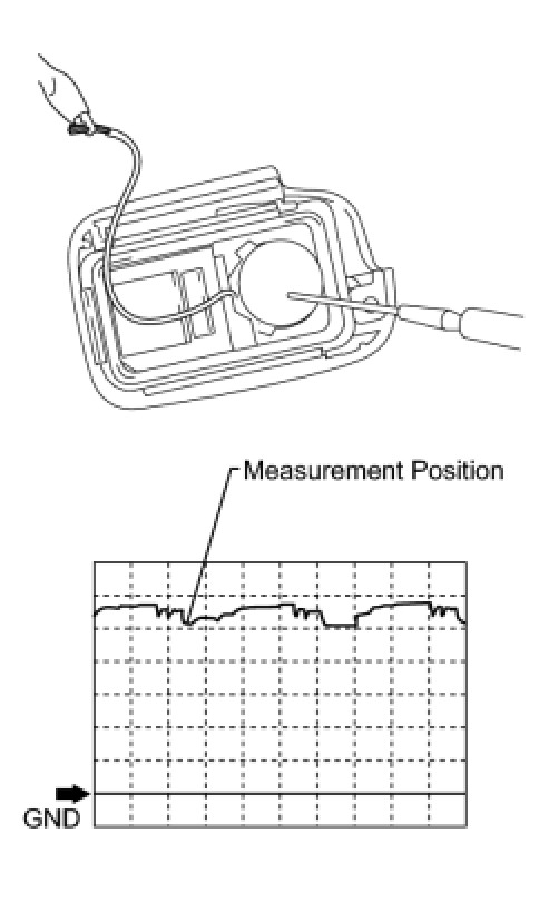 Before measuring the battery voltage, make sure that the positive side of the battery is set towards the LEXUS mark side.
