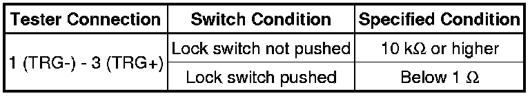 If the driver side door entry lock function does not operate but the entry unlock function operates, the communication line between the vehicle and electrical key transmitter is normal. The part at fault may be an entry lock switch circuit (certification ECU [smart key ECU assembly] -> driver side door outside handle [entry lock switch] -> driver side door electrical key oscillator).