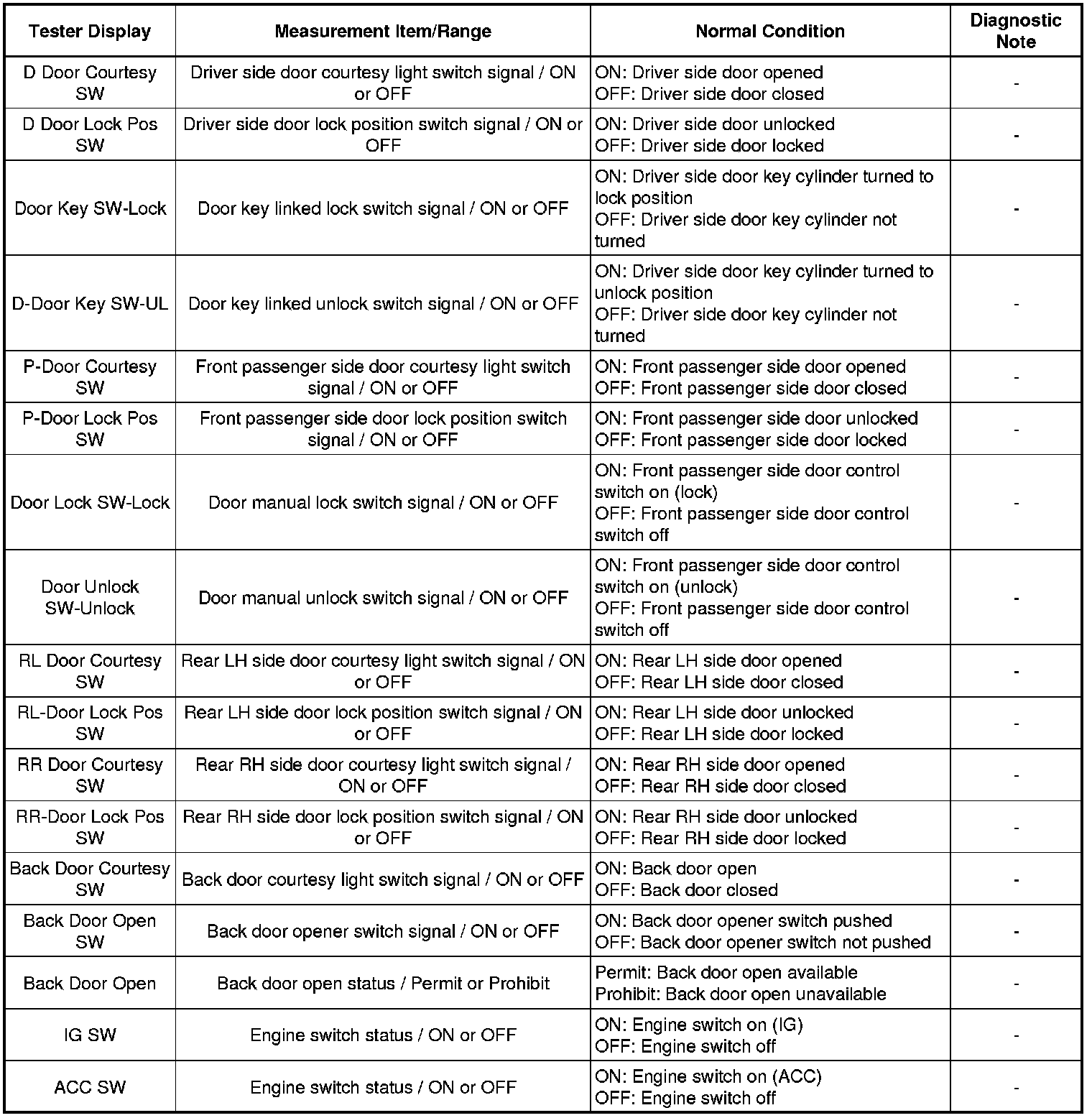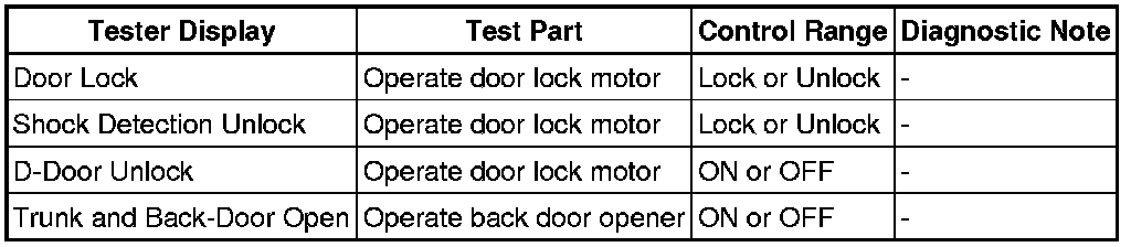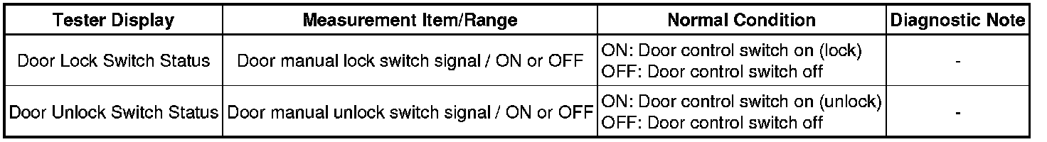 DOOR LOCK: POWER DOOR LOCK CONTROL SYSTEM: DATA LIST / ACTIVE TEST