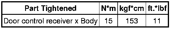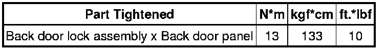 SPECIFICATIONS: DOOR LOCK: TORQUE SPECIFICATIONS