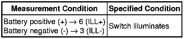 (b) Apply battery voltage to the switch connector, and check that the seat memory switch illuminates.