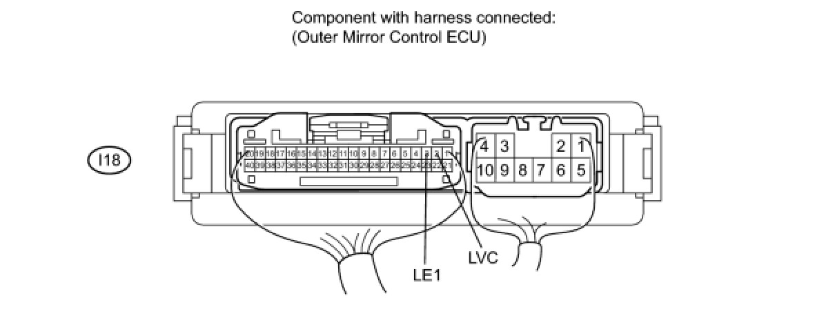 5. CHECK HARNESS AND CONNECTOR (OUTER REAR VIEW MIRROR LH - OUTER MIRROR CONTROL ECU)