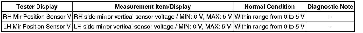(a) Check the Data List for proper functioning of the mirror position sensor Scan Tool Testing and Procedures.