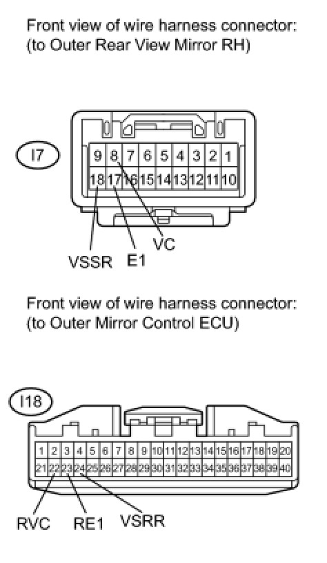 When the reverse signal is sent from the ECM through the CAN communication line to the outer mirror control ECU, the outer mirror control ECU activates the outer rear view mirror LH and RH reverse shift-linked function.