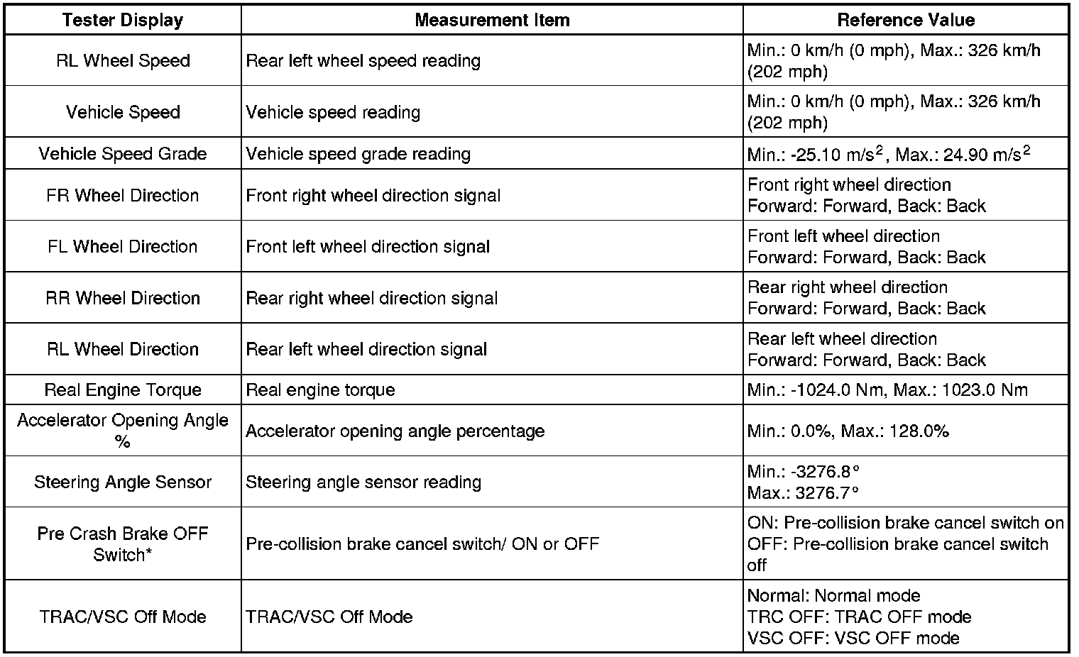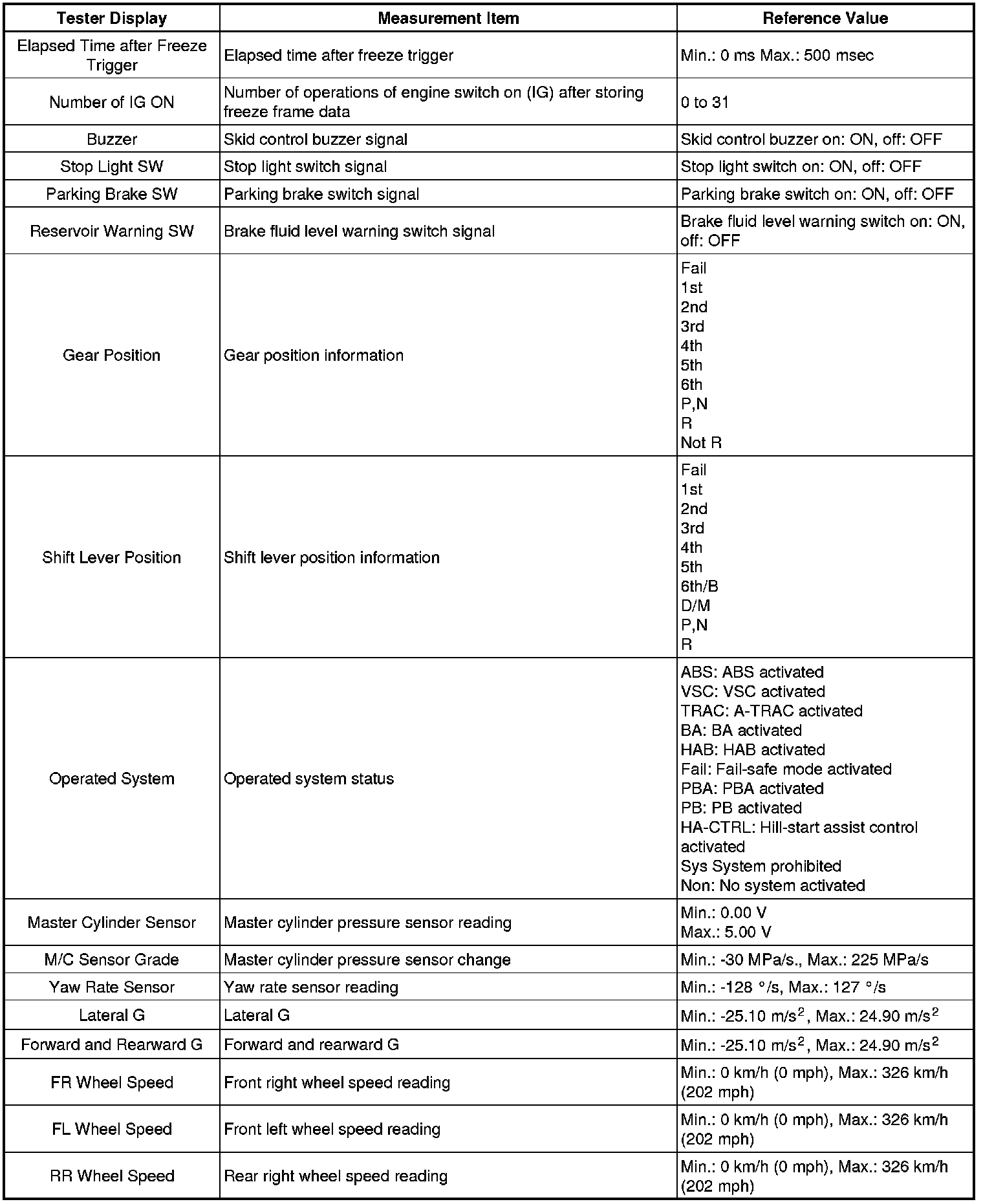 * Freeze frame data at the time a DTC is stored: When the skid control ECU stores data at the time a DTC is stored, no updates will be performed until the data is cleared.