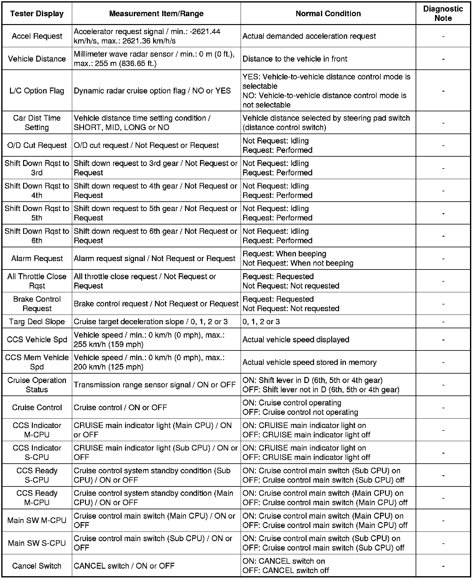 CRUISE CONTROL: DYNAMIC RADAR CRUISE CONTROL SYSTEM: DATA LIST / ACTIVE TEST