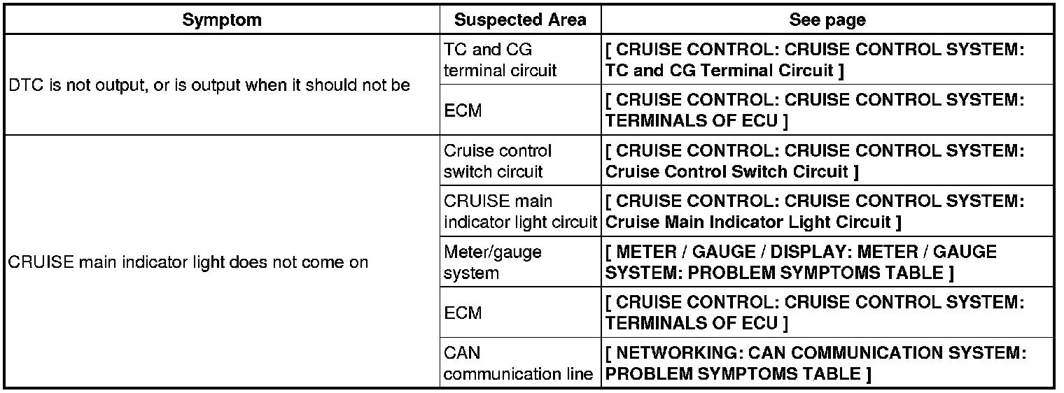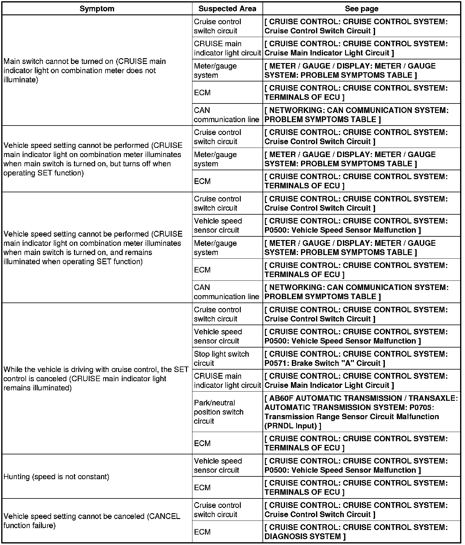 CRUISE CONTROL: CRUISE CONTROL SYSTEM: PROBLEM SYMPTOMS TABLE
