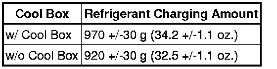 * Approximately 100 g (3.53 oz.) of refrigerant may need to be charged after bubbles disappear. The refrigerant amount should be checked by measuring its quantity, and not with the sight glass.