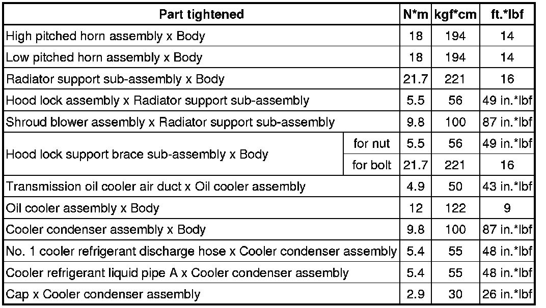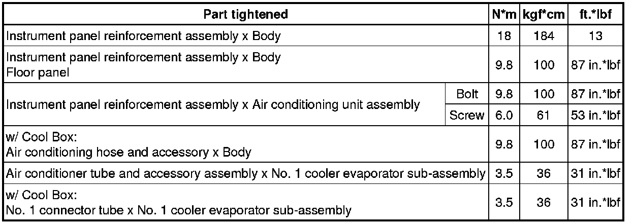 SPECIFICATIONS: HEATING / AIR CONDITIONING: TORQUE SPECIFICATIONS