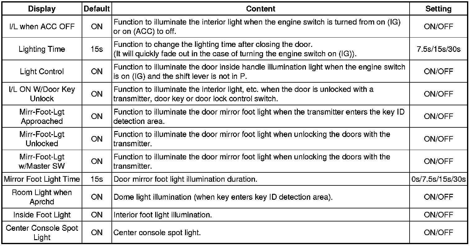 Mode 1: When door is opened, map light of opened door illuminates, or personal light illuminates