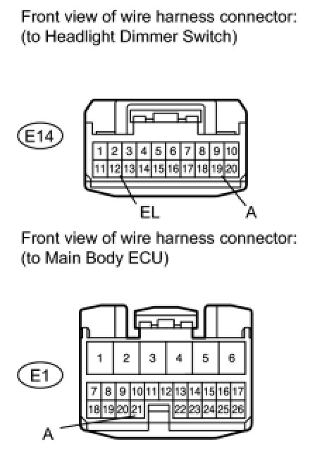 4. CHECK HARNESS AND CONNECTOR (HEADLIGHT DIMMER SWITCH - MAIN BODY ECU AND BODY GROUND)
