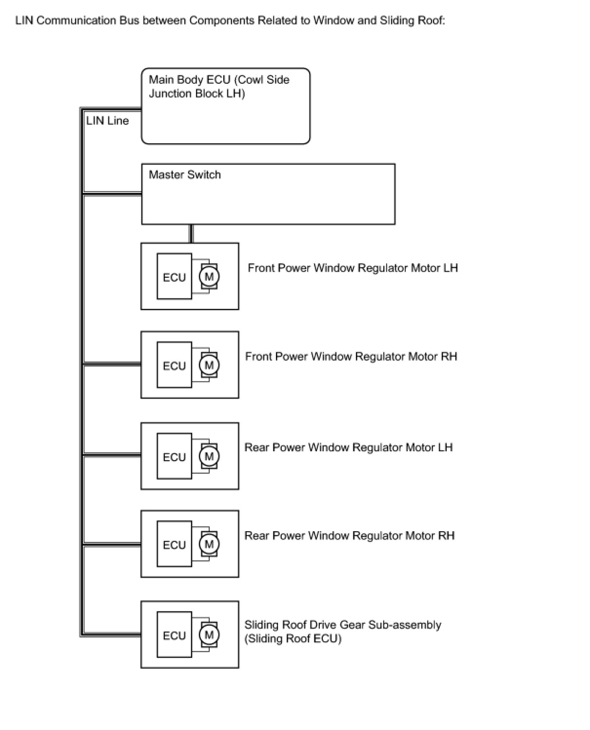 (a) Window and Sliding Roof Components that Use LIN Communication Bus: