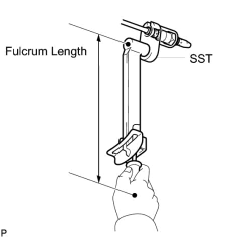 * Use a torque wrench with a fulcrum length of 300 mm (11.8 in.). If using a torque wrench with a length that is not 300 mm (11.8 in.), calculate the torque specification for the torque wrench and SST based on the "without SST" torque specification Service Precautions.