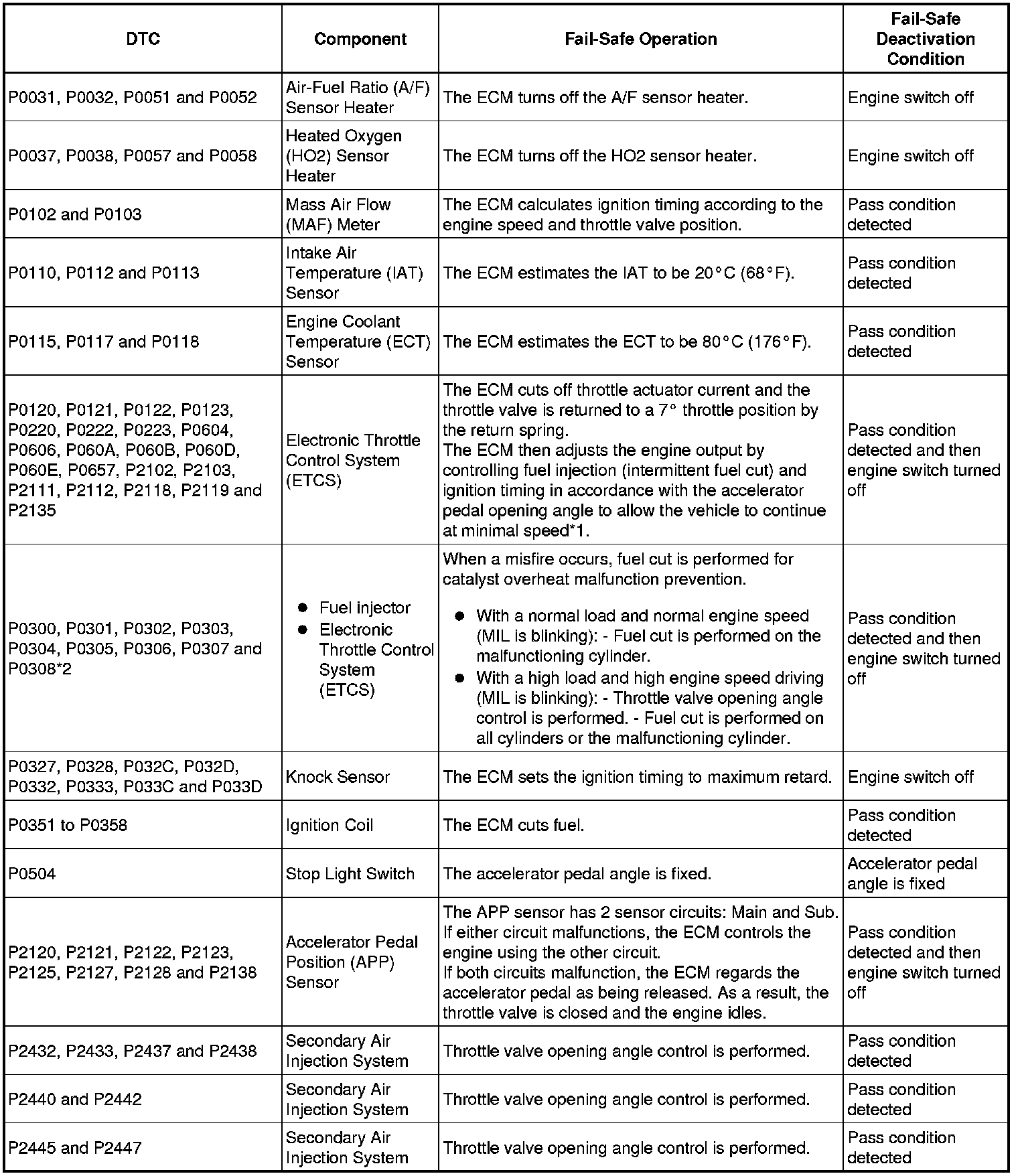 * *2: Misfire related fail-safe operations occur when catalyst overheat malfunctions occur.