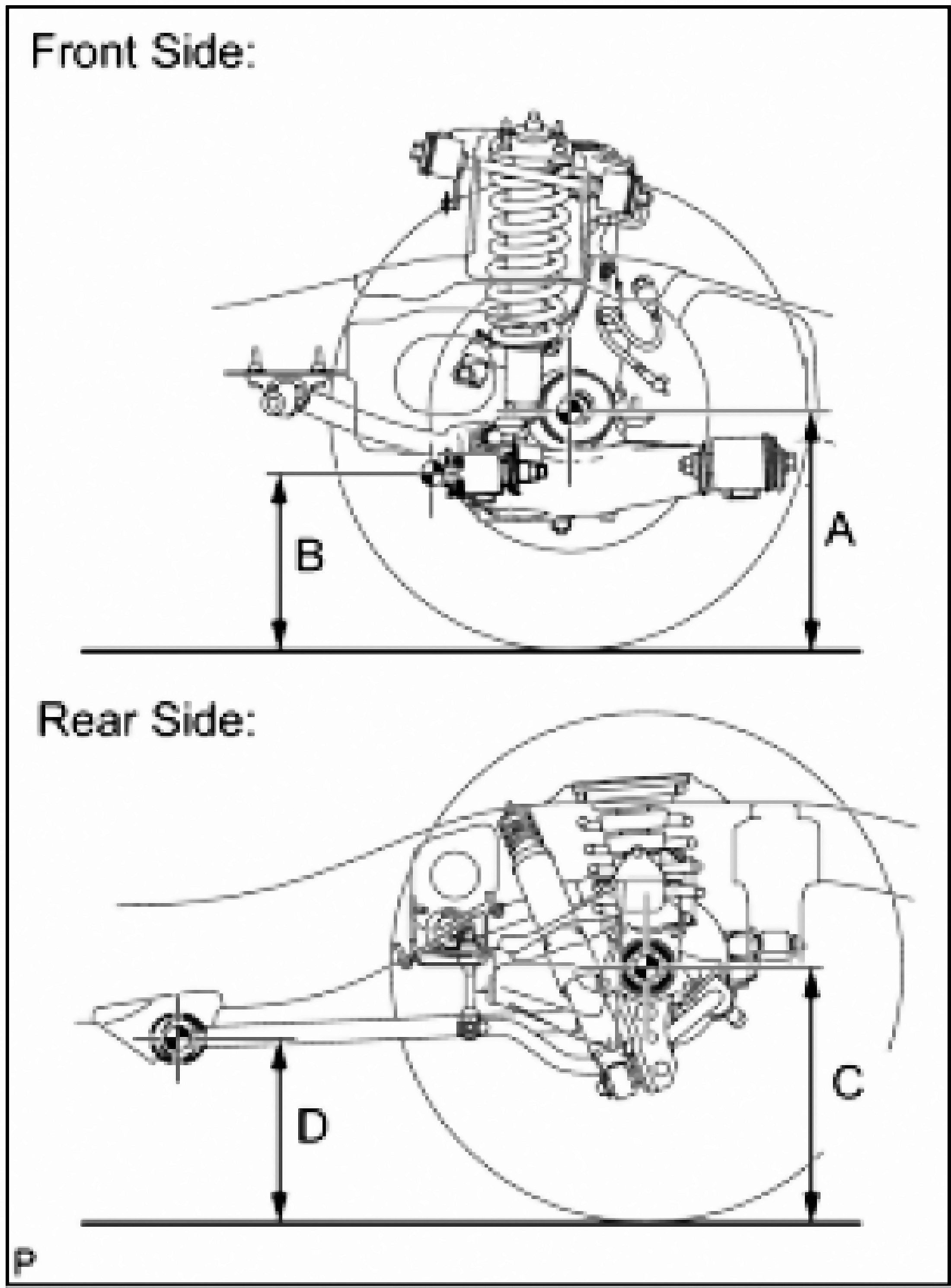 B: Ground clearance of the front adjusting cam bolt center