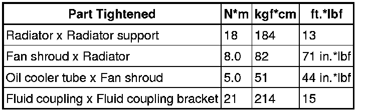 SPECIFICATIONS: 3UR-FE COOLING: TORQUE SPECIFICATIONS