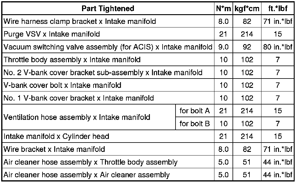 SPECIFICATIONS: 3UR-FE INTAKE / EXHAUST: TORQUE SPECIFICATIONS
