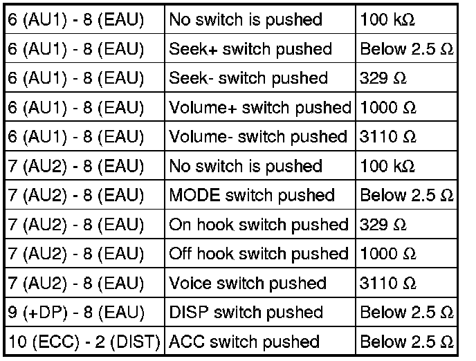 Steering Switch (w/o Dynamic Radar Cruise Control System) Standard Resistance
