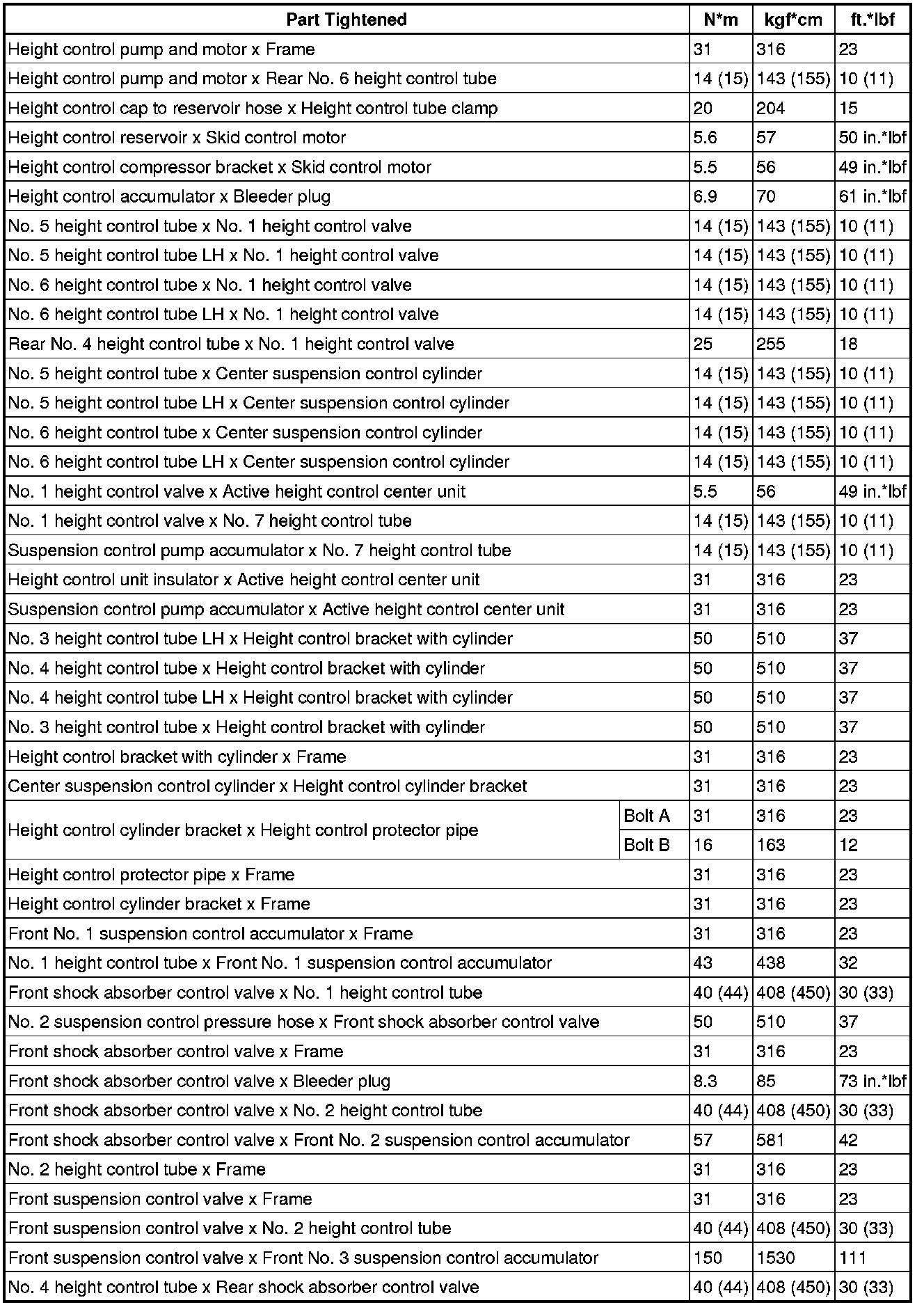 CONTROL: TORQUE SPECIFICATIONS